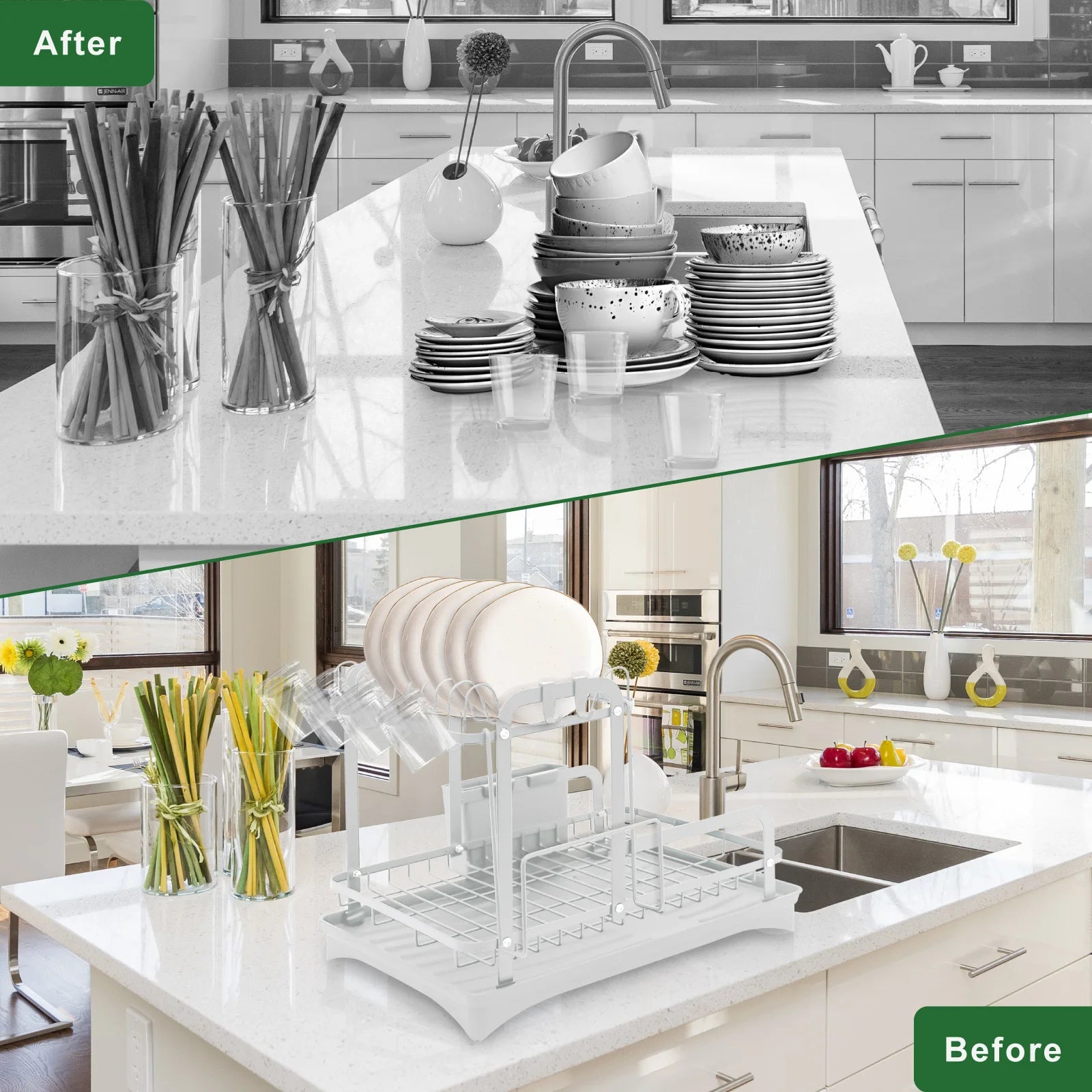Transform your kitchen with a compact, rustproof two-tier dish drying rack that keeps every utensil dry and organized.