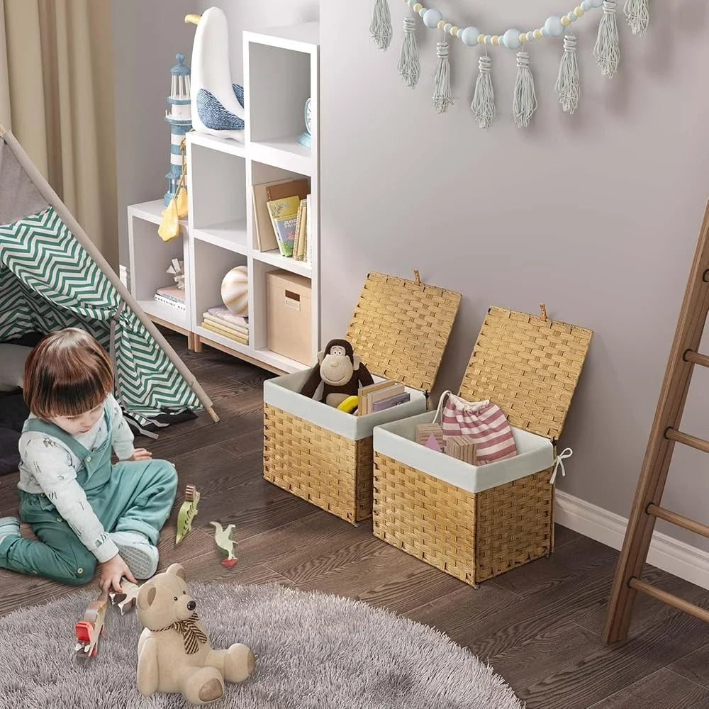 Streamline your space with a 35L Foldable Storage Basket in natural color, featuring a removable liner, lid, and convenient handles for quick, tidy organization.