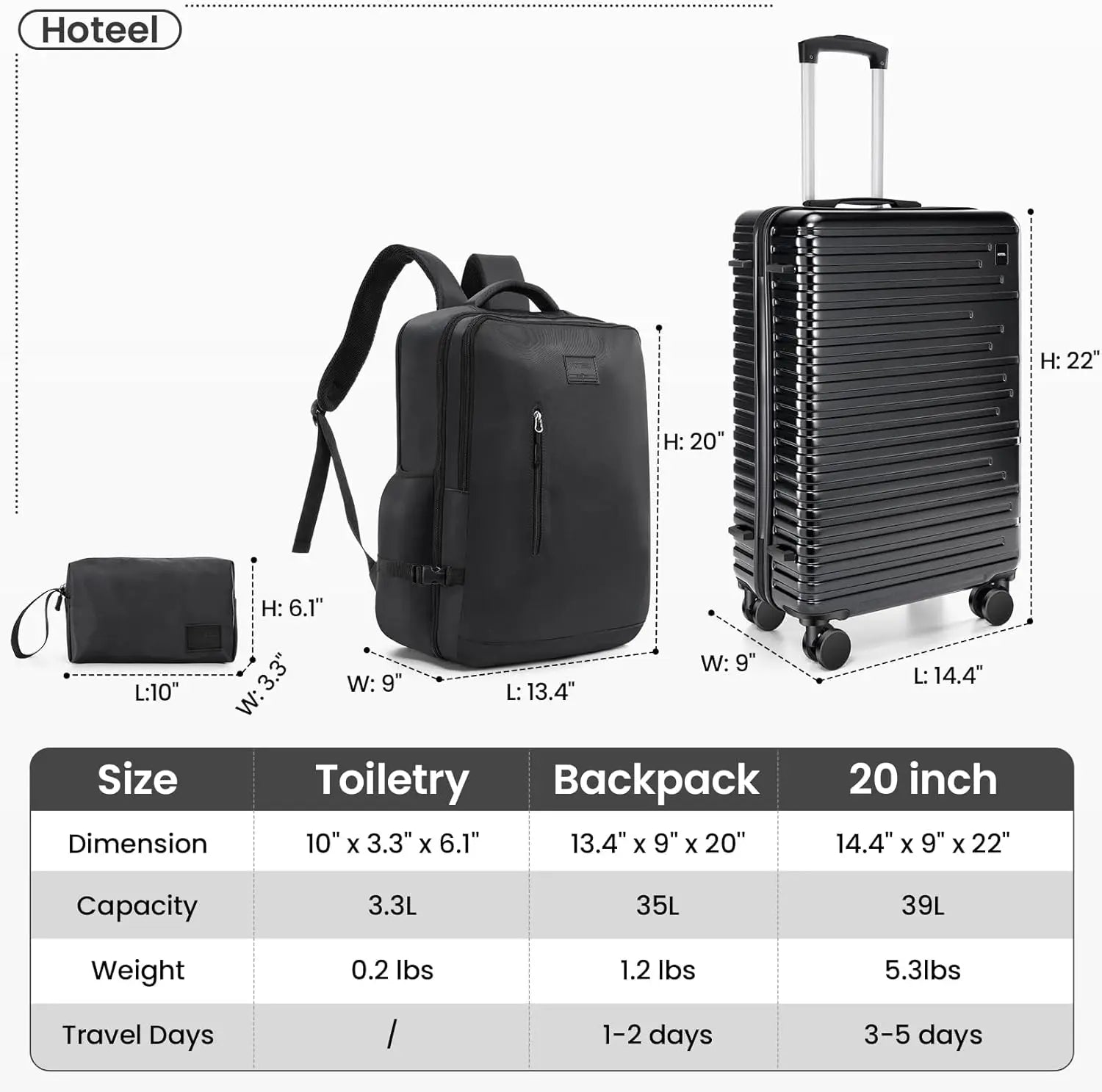 Travel smarter and lighter with the HOTEELCN Luggage Set, a durable, sleek 3-piece kit built for seamless journeys.