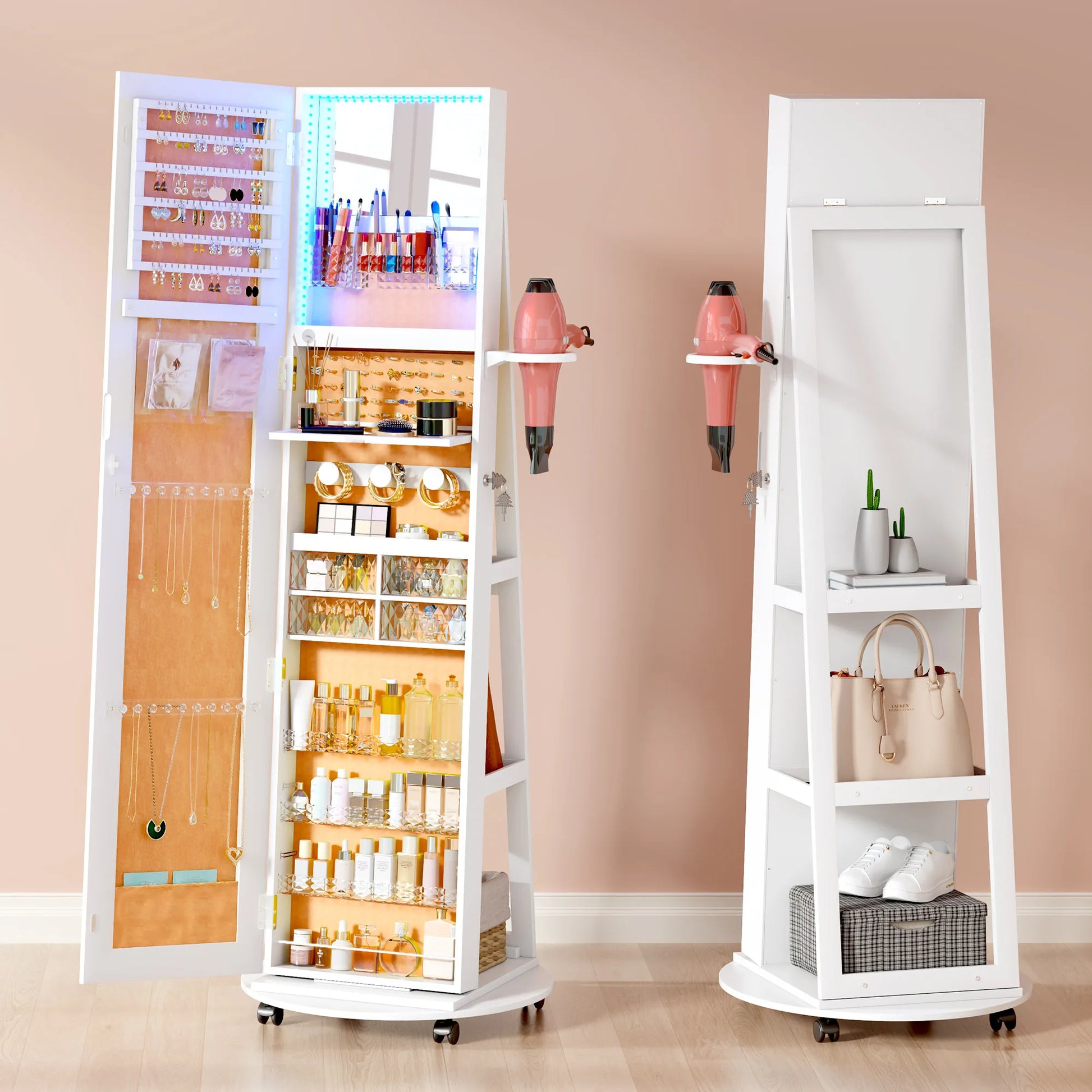 Elevate your space with a full-length mirror that doubles as a 360° rotating jewelry armoire.
