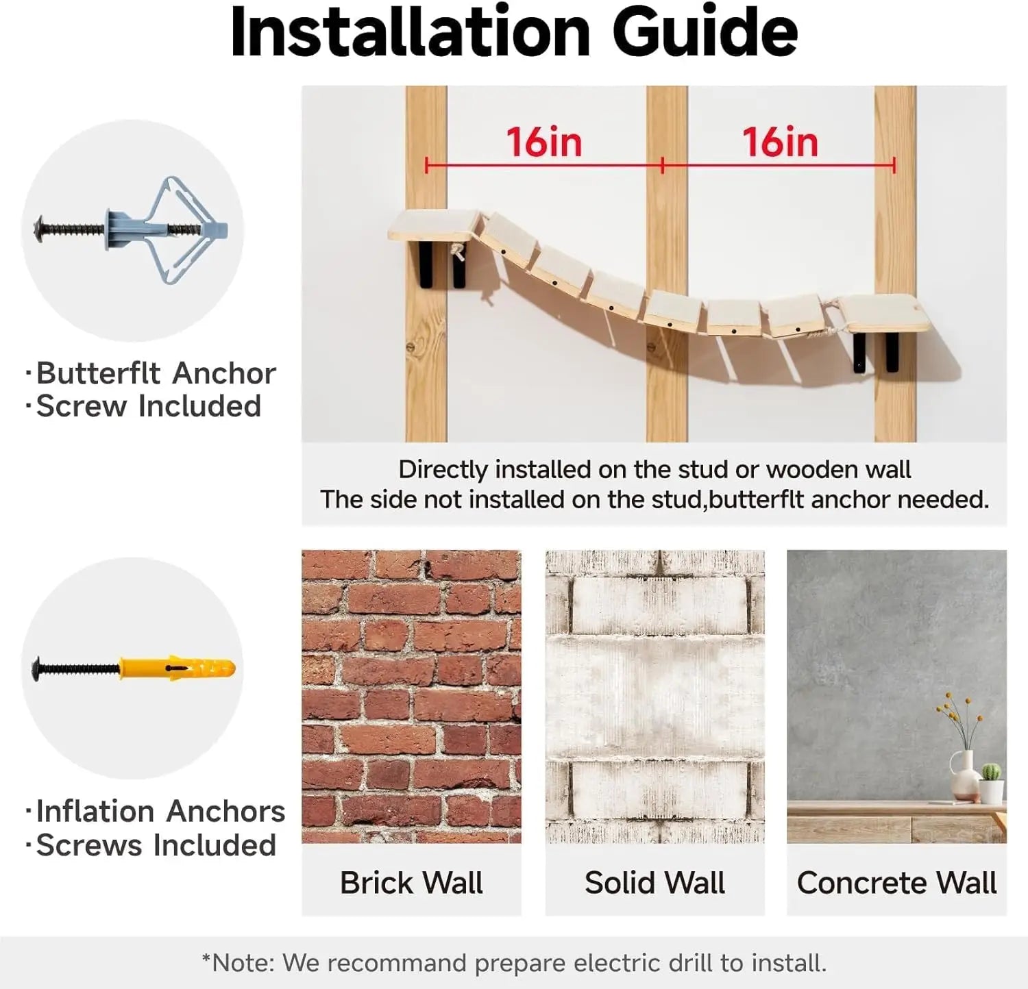 - Handcrafted from premium natural wood, connected with durable sisal rope, and equipped with noise-reducing wall pads to protect your walls and peace.