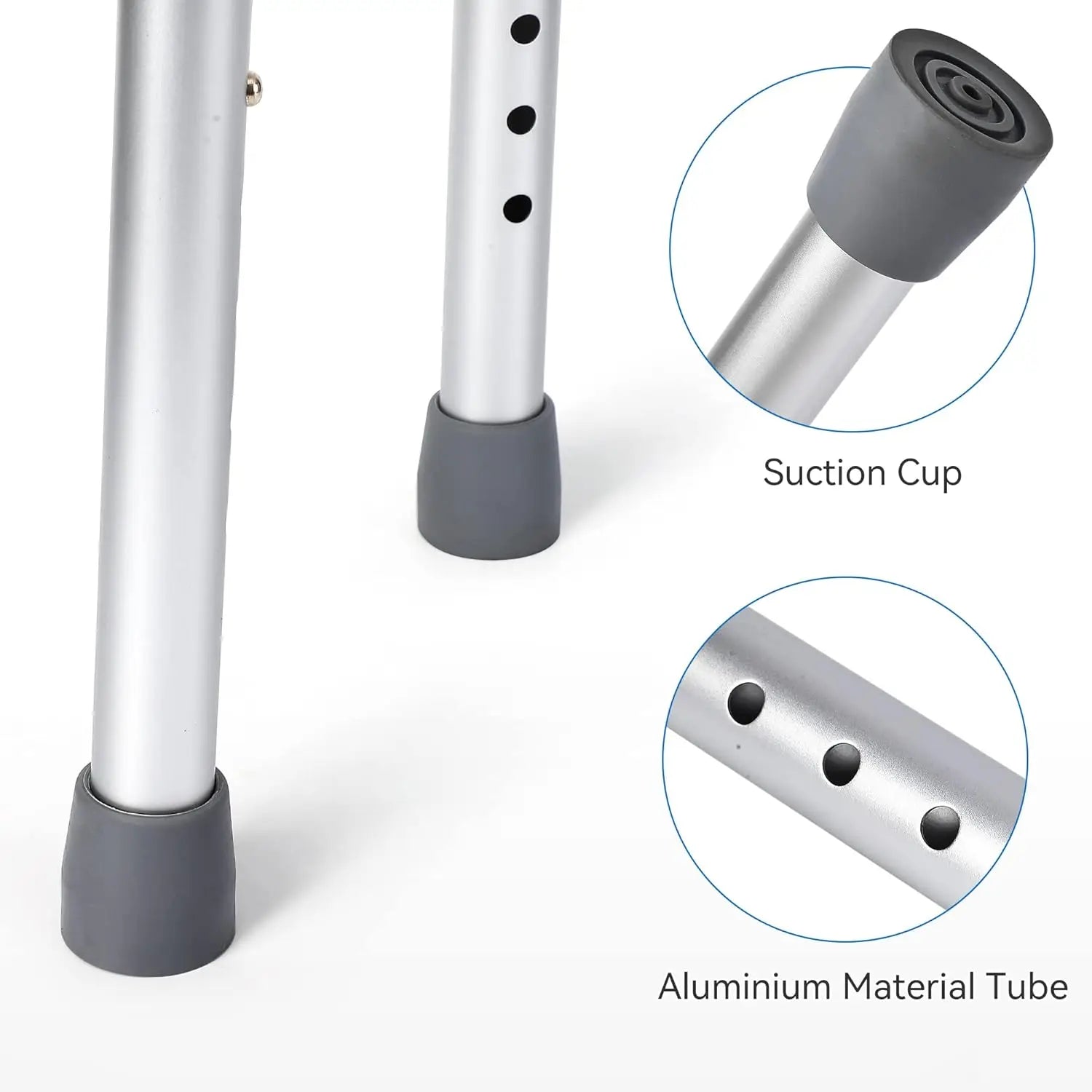 - Anti-slip design with rubber feet provides stable footing on wet floors, while the seat's drainage holes speed up water removal for a safer, drier seating surface.